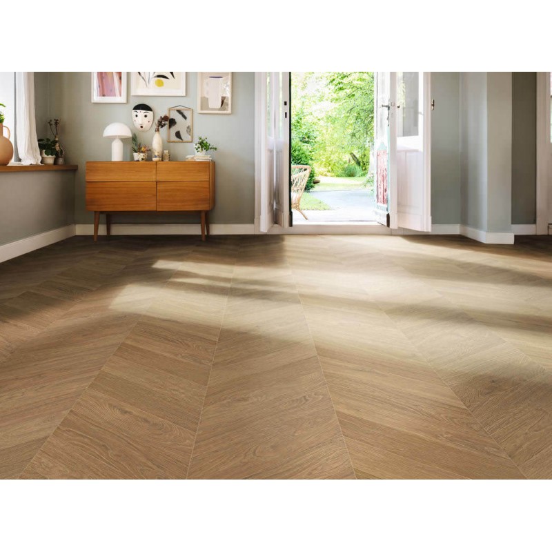 Chevron (prancūziškos eglutės) vaizdo laminuotos grindys.